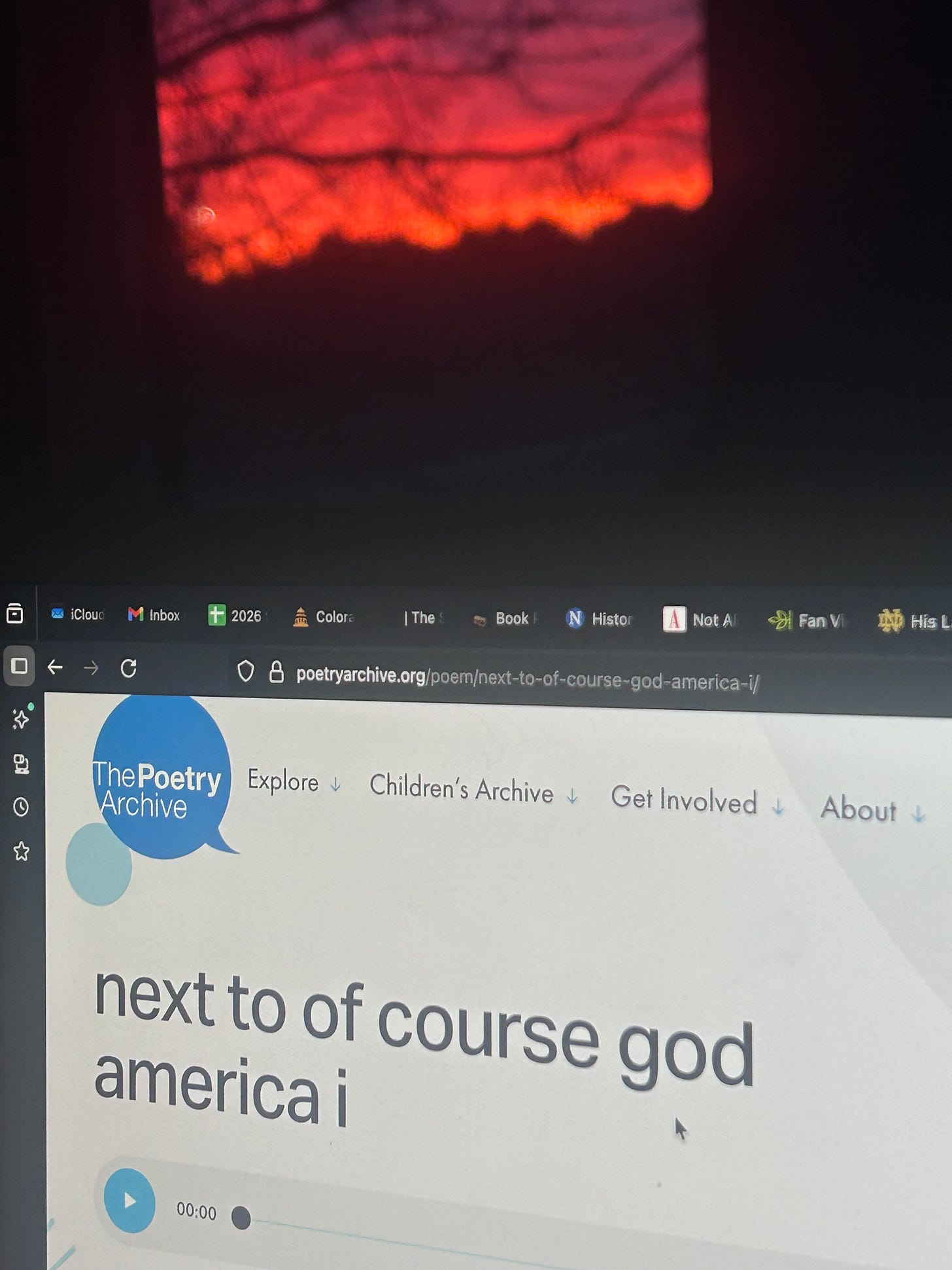 I did a paper once on e.e. cummings’ poem “next to of course god america i.” I was working in a factory at night and taking an intro to poetry class in the morning. It was 1977 and a handful of my co-workers on the assembly line were Vietnam vets. One of them, Jimmie, became a friend. After our shift ended at midnight, we would go to the Tam O’Shanter until 2:00 a.m. and then head over to the truck stop near the highway for breakfast.