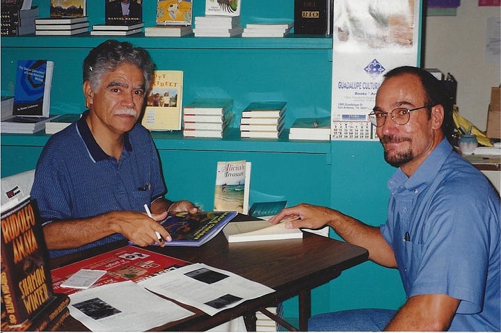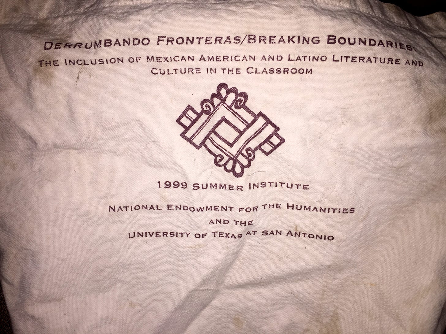 The following was written in July 1999 at the end of the National Endowment for the Humanities Summer Institute on San Antonio, Texas. Derrumbando Fronteras/Breaking Boundaries focused on Mexican American and Latino Literature and Culture in the Classroom. The content of the poem came from the notes I took over the course of the month from workshops, speakers, readings from writers and scholars (including Sandra Cisernos, Rudolfo Anaya, Elva Trevino Hart, Cristina Garcia, Denise Chavez, Ana Menendez, Andrea O'Reilly Herrera, Dolores Prida (may she RIP), Luis Rodriguez, Mary Grace Rodriquez, Pat Mora, Graciela Limon. The Institute was designed and hosted by Ellen Riojas Clark at the University of Texas / San Antonio). It was a life-changing month for me.
